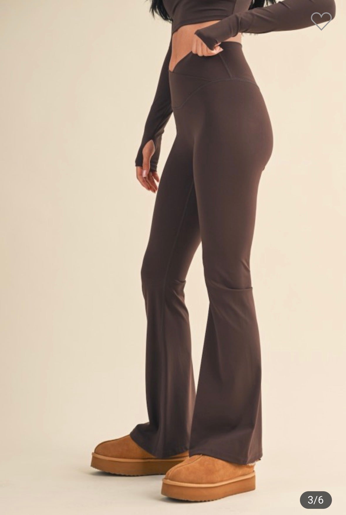 Rock your workout, or spend the day running errands in comfort with our Cappuccino Flared Leggings. Our Cappuccino Flared Leggings are the ultimate, high-waisted, cross-over flared leggings, with no front middle seam for a more flattering seamless look. Designed with a slight rise to better hug the hips and waist, and with buttery soft material.