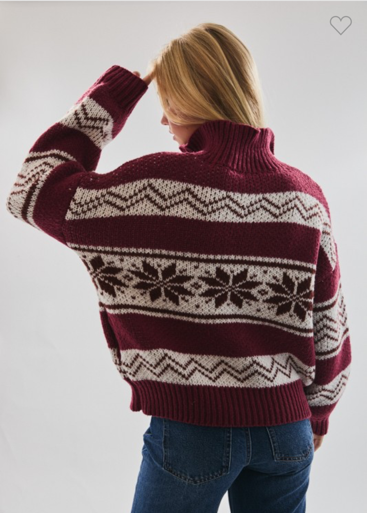 Fall into our comfiest sweater of the season. Our Eira Sweater in apple red is soft, cozy, and warm must-have for all your winter activities. With a collared detailing and snowflake print. Pair it with your favorite jeans or sweats and uggs for a cute and comfy outfit.